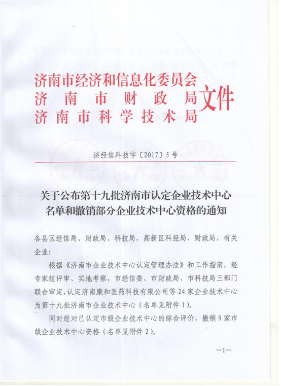 根据《济南市企业技术中心认定管理办法》和工作指南,经专家组评审。实地考察,市经信委、市财政局、市科技局三部门联合审定,认定济南齐鲁医学检验有限公司等24家企业技术中心为第十九批济南市企业技术中心。