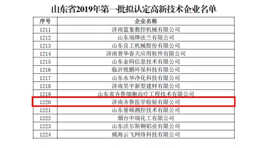 喜报——恭喜济南齐鲁医学检验所再获高新技术企业称号